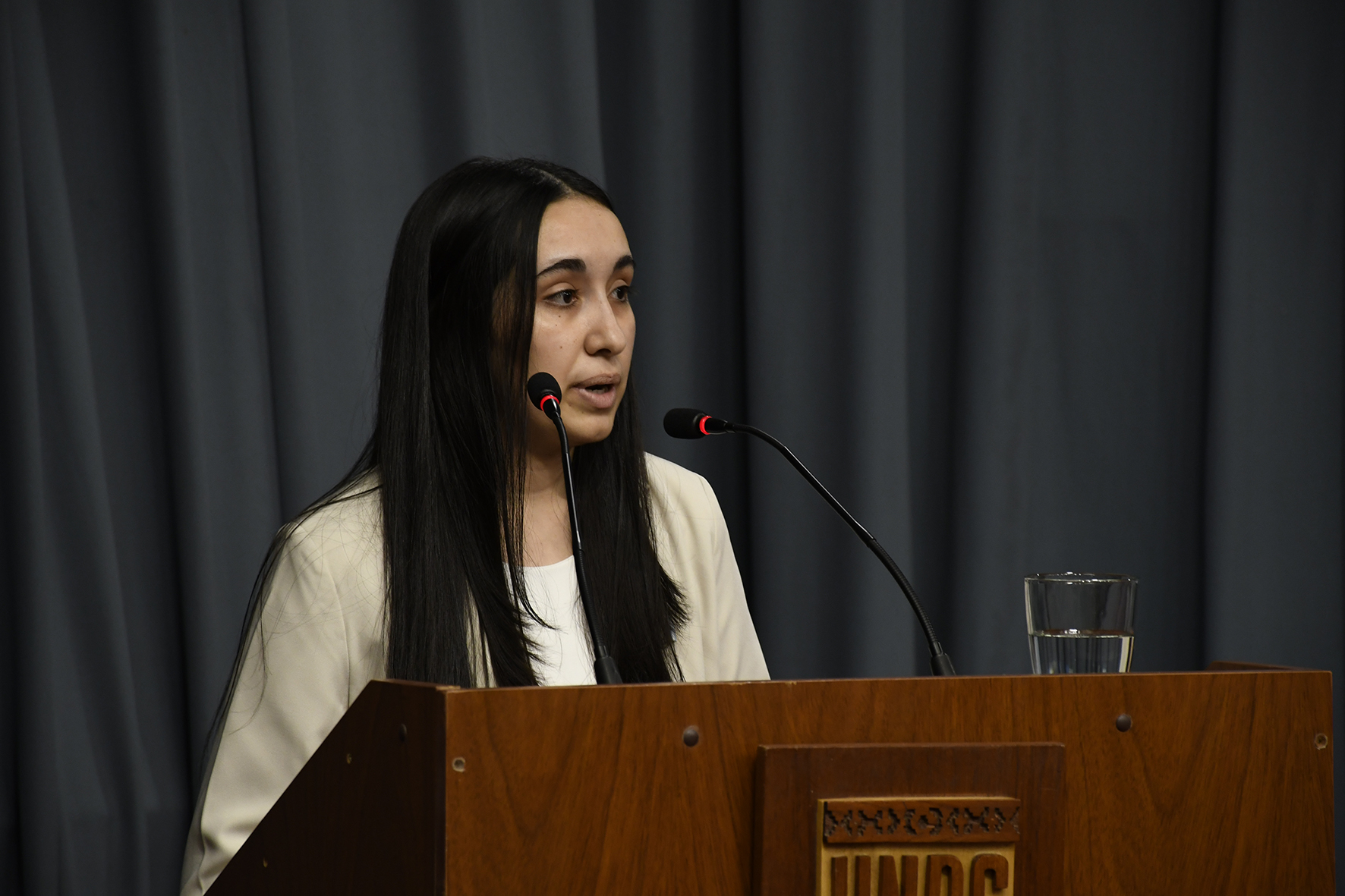 En la primera ceremonia, la voz de los egresados la tuvo Camila Vicente, flamante ingeniera agrónoma y ex presidenta de la Federación Universitaria de Río Cuarto, quien destacó el rol de la Universidad Pública y el acompañamiento familiar.