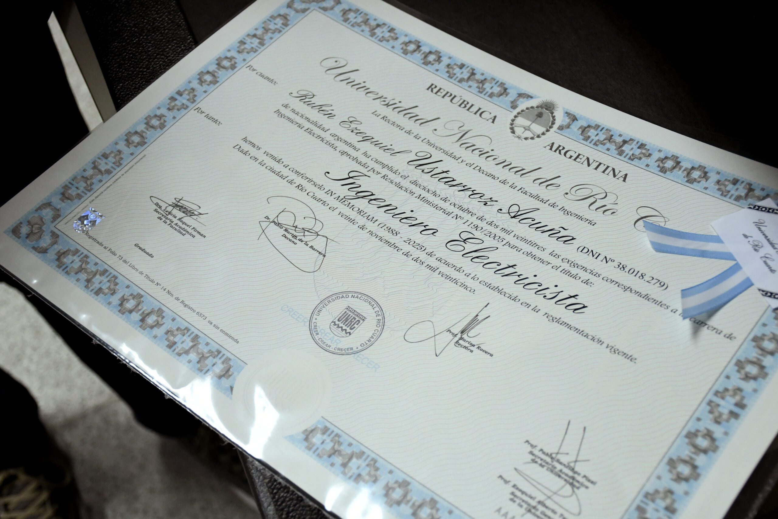 Con suma congoja se realizó la entrega del título de grado a Ruben Ezequiel Ustarroz Acuña, quien fue asesinado durante una discusión al finalizar un partido de futbol.