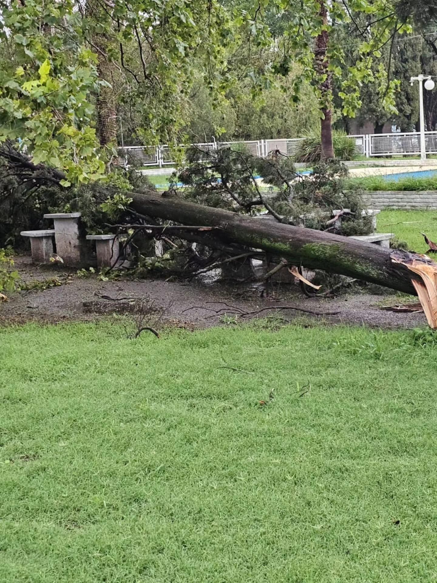 La tormenta también provocó caída de árboles en Río Cuarto. Javier de Olmos, responsable de Defensa Vivil, dijo que el fuerte viento fue sectorizado en la ciudad y afectó al sudoeste de la ciudad y al oeste de Banda Norte.