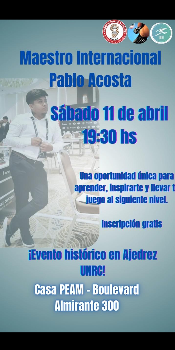 La actividad, organizada por la UNRC, será este sábado a las 19.30 en las instalaciones del PEAM. Se trata de un evento histórico para la ciudad, según valoró Leandro Tobares, quien confirmó que el domingo habrá representación universitaria en el Torneo por Equipos en La Carlota.